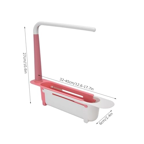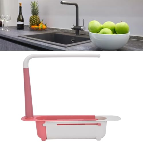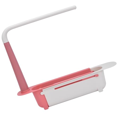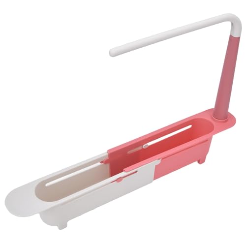 Cyrank - رف تخزين تلسكوبي للحوض منظم حوض قابل للتمدد صينية قابلة للتعديل طبق صابون اسفنجي سلة تصريف لحوض المطبخ احمر البولي بروبلين