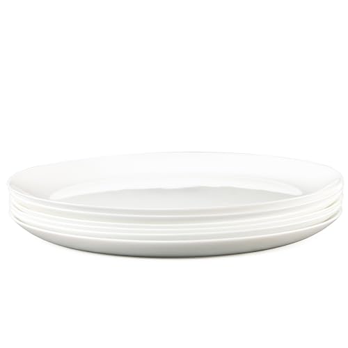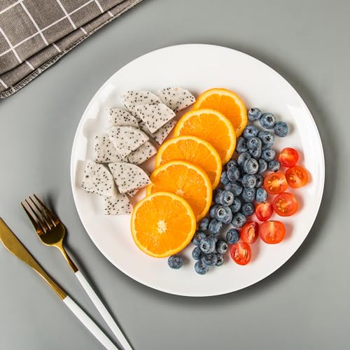 CYUFU - Dinner Plates Set of 6, Tempered Glass White Plates, 10-1/2-Inch Round Dish Set, Microwave & Dishwasher Safe Glass Plate Set