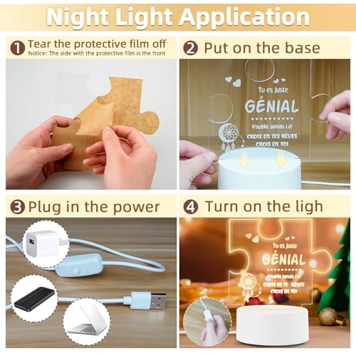 - 【جودة عالية وإضاءة دافئة】المصباح الليلي مصنوع من الأكريليك عالي الجودة، لا يوجد زجاج سهل الكسر، إنه قوي وآمن. الضوء الأبيض الدافئ ناعم ولا يهيج عينيك، حتى إذا استيقظت في منتصف الليل، فلن يكون مبهرًا.