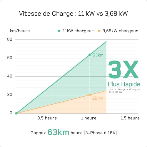 - 3 x faster than household plugs: with 3-phase CEE 16A plug, you get 11 kW charging power per hour (230 V x 16 Ax3). 3 x faster than normal household Schuko plugs, 230V x 16A. Save 13 hours by switching from Schuko to CEE Red 16A charger.