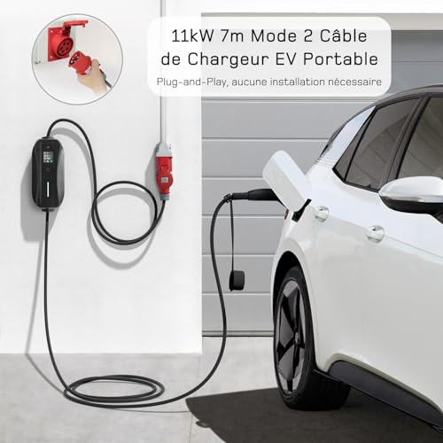 - 2-in-1 function: a 11 kW wallbox + a 7 m type 2 to type 2 cable. Save extra cost and space by opting for this portable 2-in-1 charger. 7 m long offers you a longer range, charge your second vehicle on the driveway / in the garage.