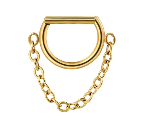 BIJOUX BEAUTIQUE - D-Shape Chain Clicker Hoop Piercing Jewelry - Gold