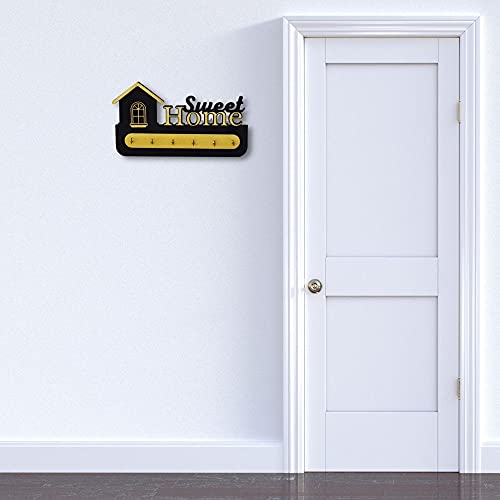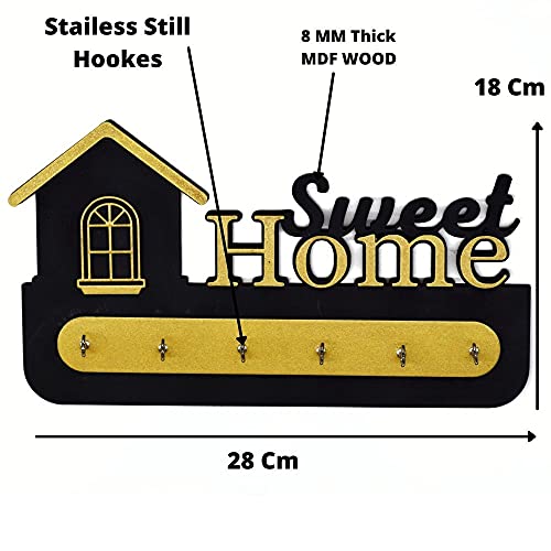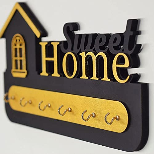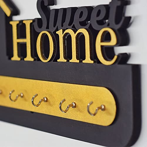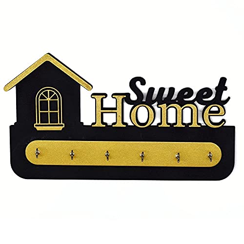 D Unique Home Decor - Wooden Key Holder with Stylish Stainless Steel 6 Hooks Beautiful Key Organizer (Gold, black)