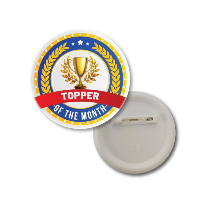 D2C - شارة Topper of The Month، دبوس دائري بمقاس 58 ملم مع مشبك خلفي، مثالي للمدارس والكليات ولجوائز التقدير للتميز الأكاديمي من D2C