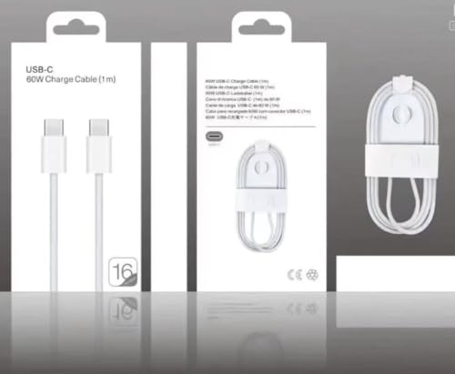 - DADOO 1M Fast Charging Cable Type-C to C-3A 60W Data Sync Compatible with iPhone 17/16/15 and Samsung S25/S24 - White