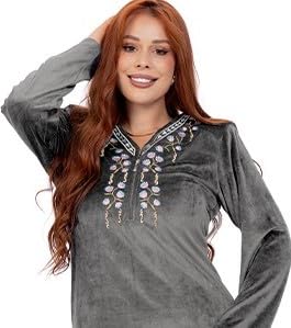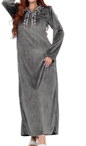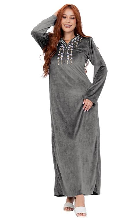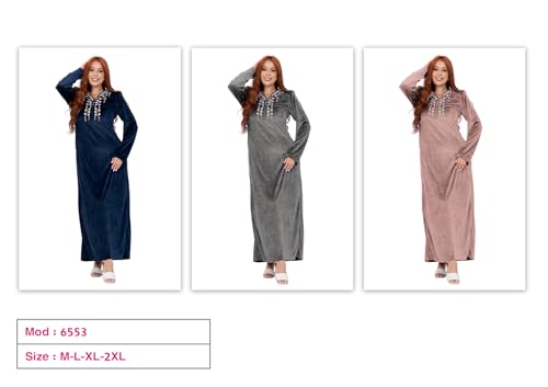 Dadoush - Dadosh Winter Long Velvet Nightgown with Elegant Embroidery - Soft and Comfortable Home Wear or Reception - Winter Nightgown for Women
