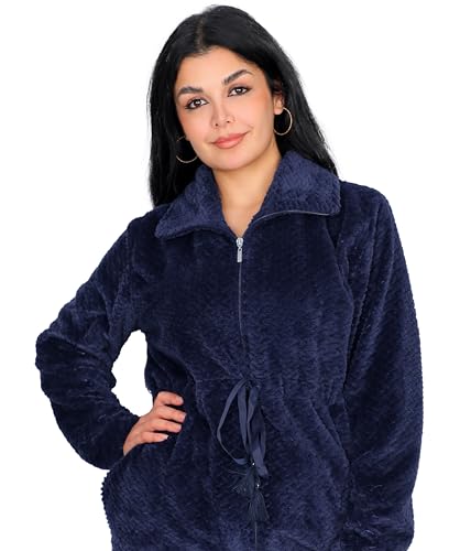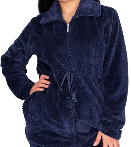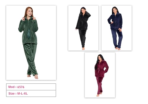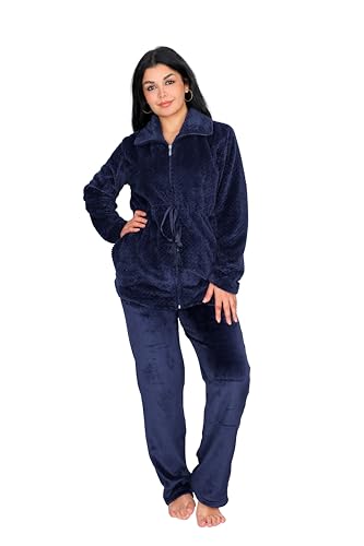 Dadoush - طقم بيجاما نسائي من قطعتين من الفرو، بسحاب وحزام خصر - بيجامة فرو حريمي كم طويل من دعدوش - طقم بيجاما نسائي يجمع بين الاناقة والراحة
