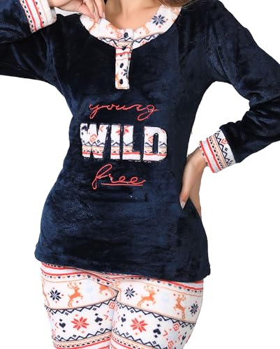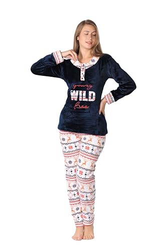 Dadoush - طقم بيجامة نسائي من الفرو، تصميم عصري بنقشة الزهور، بيجامة شتوية مع بنطلون للنساء - بيجاما شتوية حريمي لتتمتع بالطقس الشتوي مع خامة الفرو من دعدوش