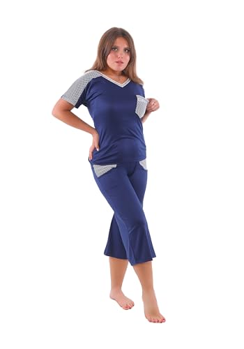 Shower - Dadosh Women's Plain Bermuda Pajama Set with distinctive embroidery on the collar and pocket for more elegance and beauty - Half sleeves and special cut Pajama Set