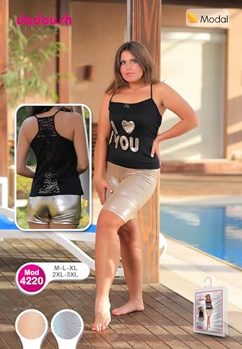 Dadoush - طقم بيجامة حريمي بحمالات رفيعة و شورت قصير ومثير باللون الذهبي والفضي الخلاب - بيجاما هوت شورت للنساء من دعدوش .