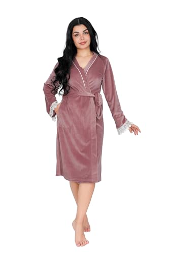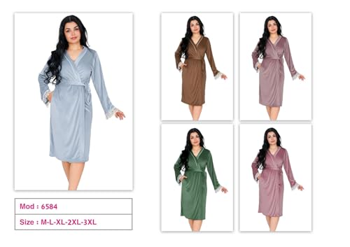 Dadoush - Dadosh Women's Velvet Long Sleeve Kamino with Lace Velvet Robe