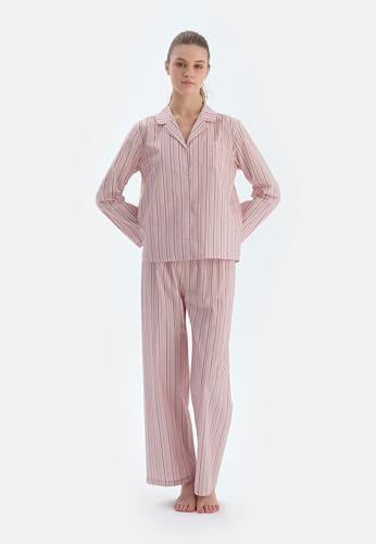 Dagi - Dagi Valentines Day Striped High Waist Viscose Trousers for Women, Size