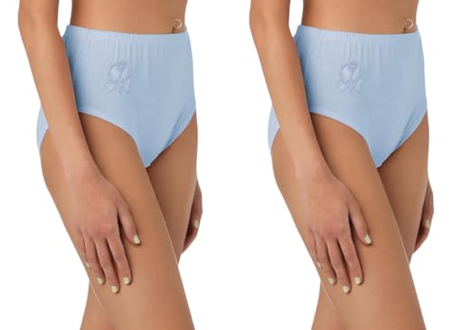 Dahab - Dahab Cotton Set Of 2 Pieces Elastic Waist Brief Embroidered Flower For Women-Baby Blue-L
