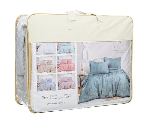 Dahab Luxury Home - طقم غطاء لحاف اماس بزخرفة كابتونيه من دهب لاكشري هوم، مقاس 2.2 × 2.2 م، أبيض فاتح، 3 قطع