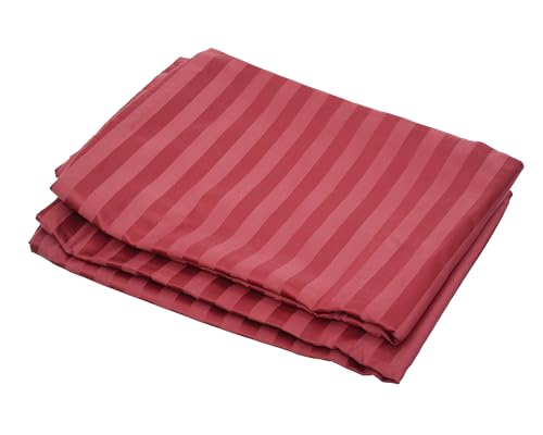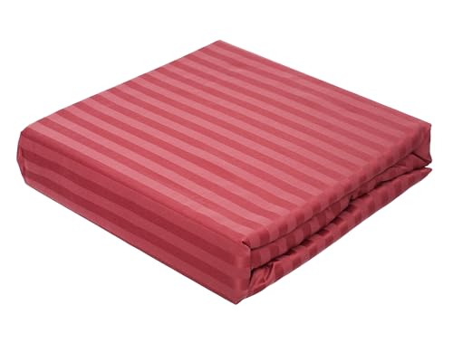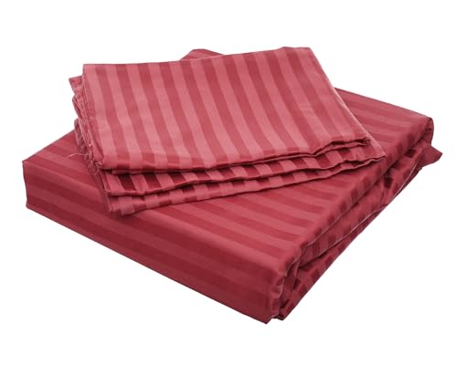 Dahab Luxury Home - Julie Striped Elastic Bed Sheet and Pillowcases 3-Pieces Set, 200 cm x 180 cm Size, Dark Red