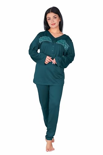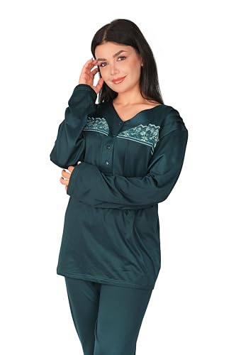 Dadoush - بيجامة قطنية بتصميم شتوي للنساء من دعدوش/ بيجاما مكونة من بلوزة برقبة على شكل حرف V وأكمام طويلة وبنطلون/ طقم بيجامة شتوية من القطن / مريحة ومتينة للارتداء المنزلي