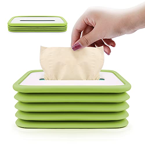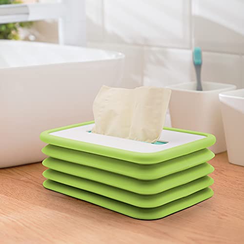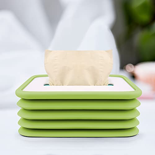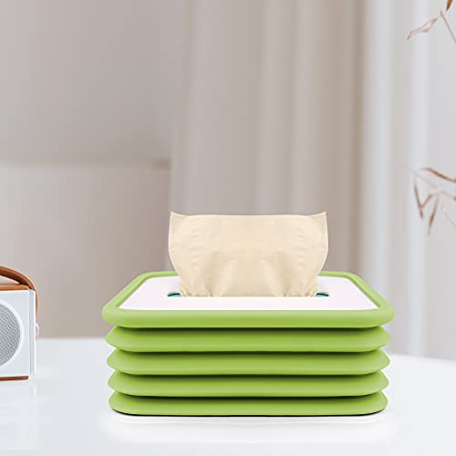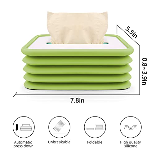 DAILY&DIARY - DAILY&DIARY Tissue Box Holder Rectangle Silicone Foldable Paper Facial Tissues Box Holder Rectangular,Free-Retractable Capacity Tissue Spring Box for Bathroom Kitchen Bedroom Office Car Living Room