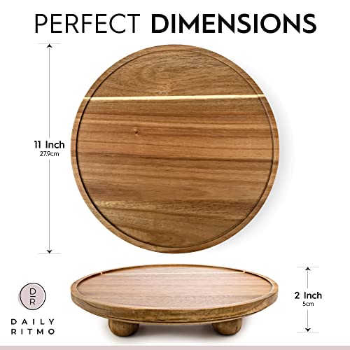 DAILY RITMO - صينية رافع دائرية من اكاسيا | حامل خشبي بنمط ريفي للديكور والعرض | كيك دائري الخشب الطبيعي مقاس 11 انش