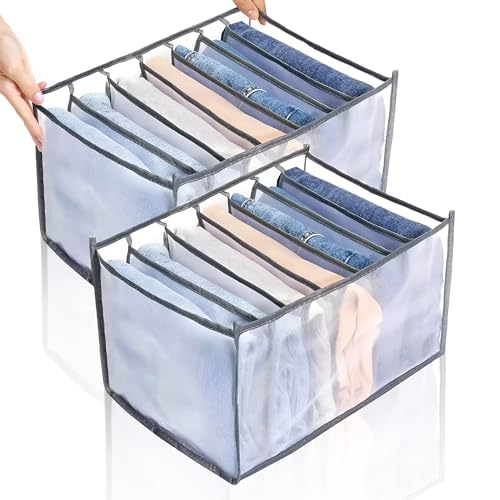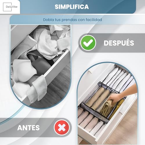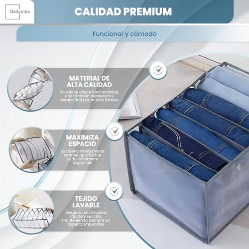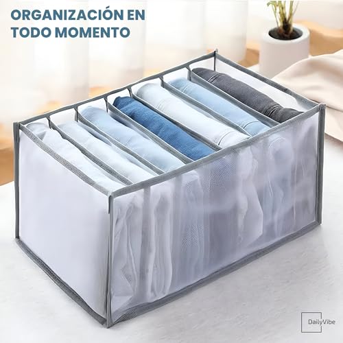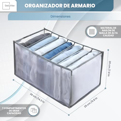 DailyVibe - منظم ملابس لخزانة الملابس من ديلي فايب، أدراج تنظيم الجينز والتيشرتات، صناديق تنظيم موفرة للمساحة قابلة للتكديس مع 7 مساحات تخزين [36 × 25 × 20] سم