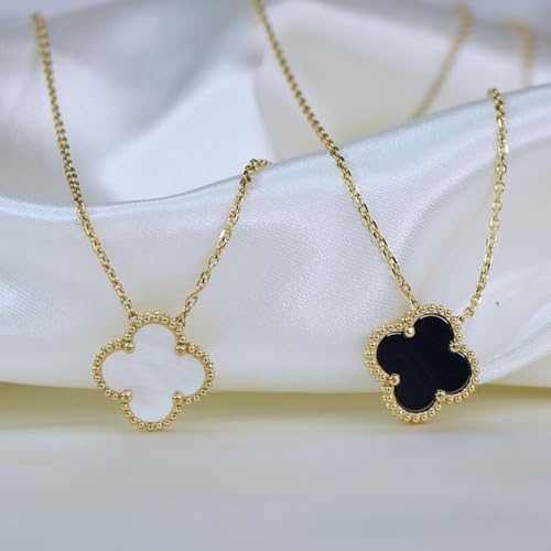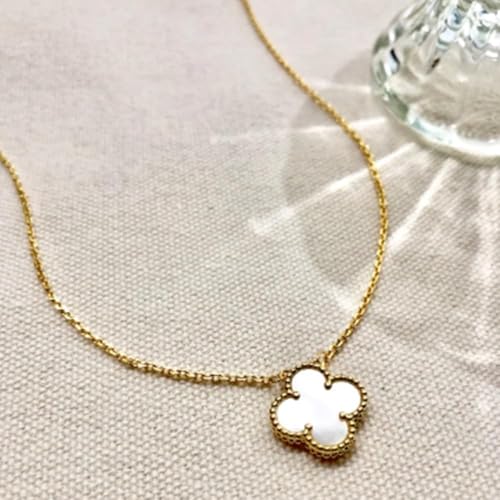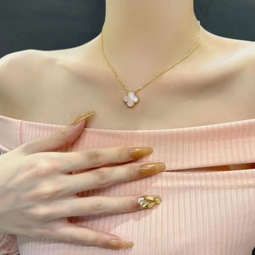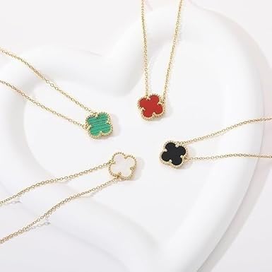 Generic - Dainty Clover Pendant Necklace, Gold Plated Chain, Green,Pink, White, Black and Gold Malachite Stone, Quatrefoil Design, Delicate Fashion Jewelry for Women