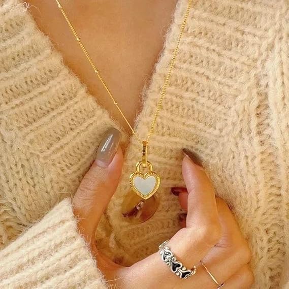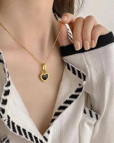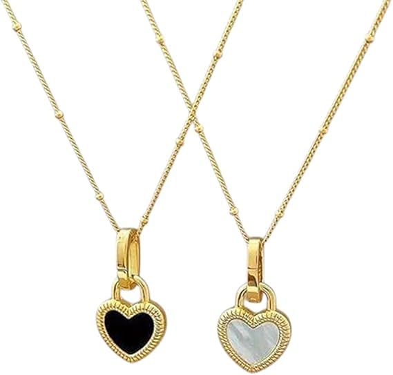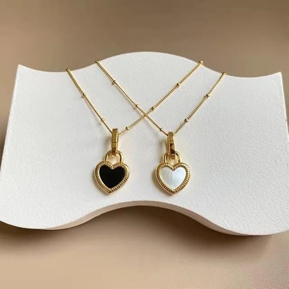 Generic - Dainty Double Face Heart Pendant Necklace Gold Color Chain with White and Black Pearl Pendants Fashion Jewelry