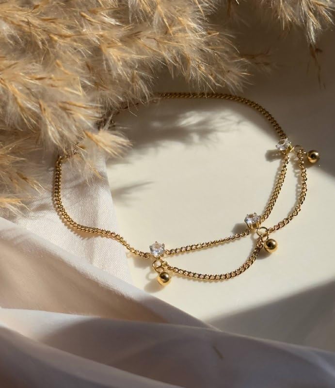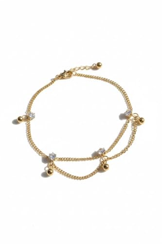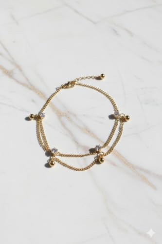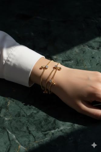 Generic - اساور ذهبية انيقة للنساء، سوار مطلي بالذهب بطبقات قابلة للتعديل، سلسلة بيضاوية لطيفة من اللؤلؤ، اساور ذهبية للنساء