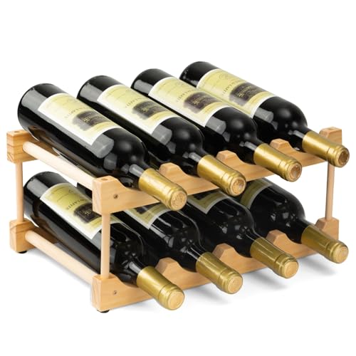 Dakartoon - Farmhouse Wine Rack for Countertop Freestanding 2 Tier Wood Organizer, Small Modular Design for 8 Bottles, Perfect for Cabinets (2 Tier)