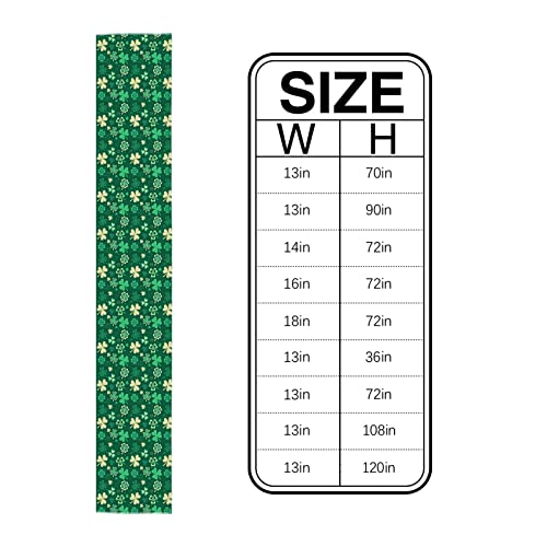 - Perfect Table Decorations - This St. Patrick's Day shamrock table runner is 13" x 90" in size(Wide x Long), appropriate for a table that can seat 6-8 people. This lucky clover table runner brings a warm and pleasant atmosphere to your family dinner, perfect fit for your rectangle table, round tables, oval table, square table, coffee table or any other table decorations