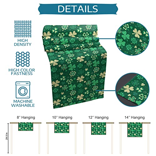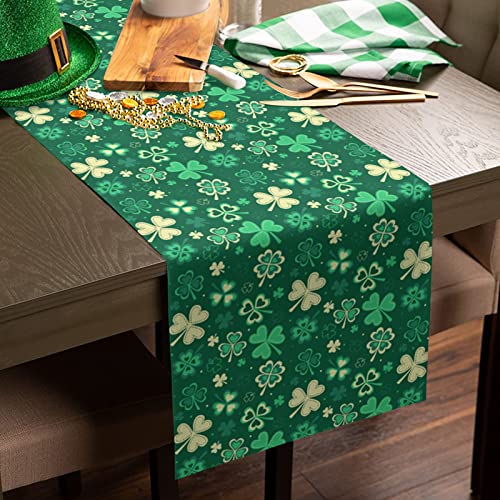 Daleng - Daleng St. Patrick's Day Shamrock Table Runner 13 x 90 Shiny Dreamlike Lucky Irish Shamrock Clover Green Table Runner Non-Slip Dresser Scarves for Home Decorations, Party, Dinner and Gatherings