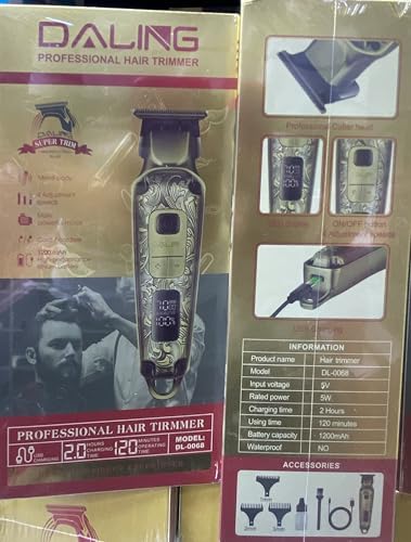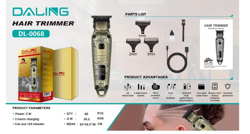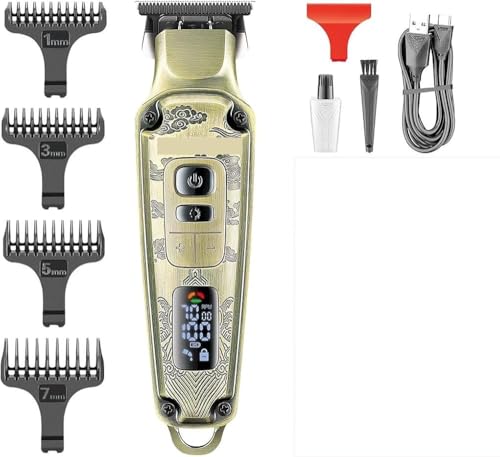 Generic - DALING Men's Razor with Black Ceramic Blade — 4-Speed Motor for 7000 Revolutions, 5W, 1200mAh Battery (Type-C Fast Charge 2H ➜ 2H Playtime), 3 Cutting Combs, Zero Cut, Metal Body