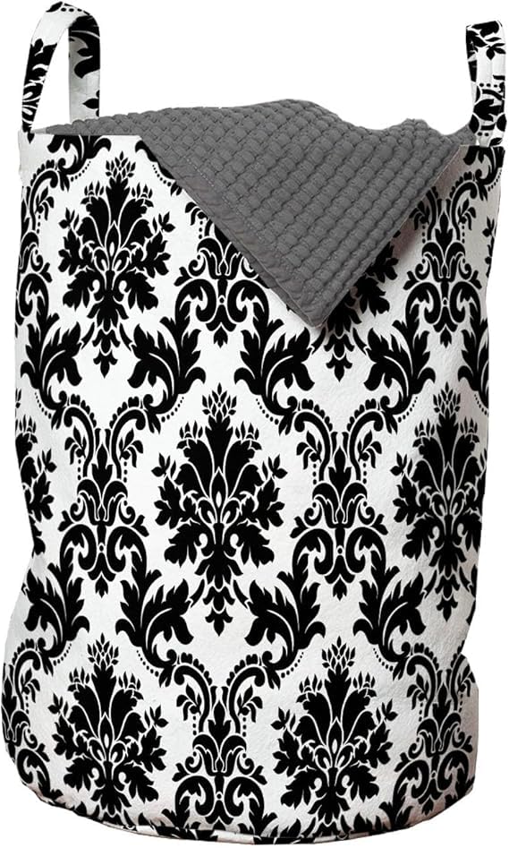 Generic - Damask Laundry Bag Pack of 2, Vintage Style Pattern Classical Victorian Interior Design Elements Floral Print, Hamper Basket with Handles Drawstring Closure, 13" x 19", Black and White