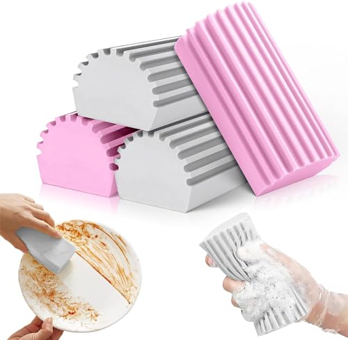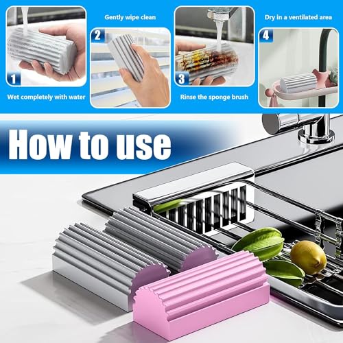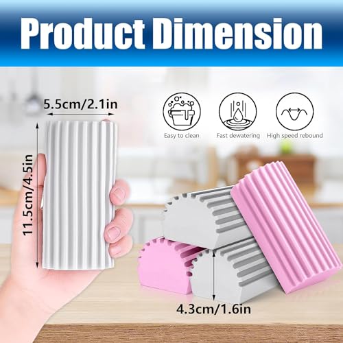molkocan - إسفنجة تنظيف رطبة قابلة لإعادة الاستخدام لتنظيف الغبار عن الستائر والزجاج والألواح والدرابزين وفتحات التهوية والمرايات ومجرى النوافذ، عبوة من 4 قطع (لون رمادي ووردي)