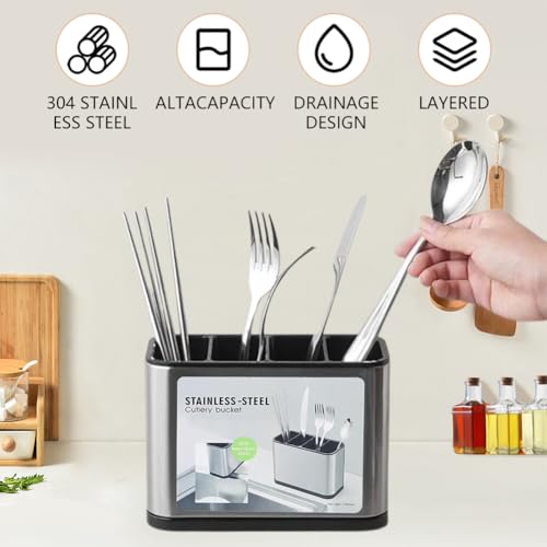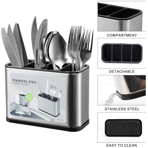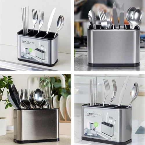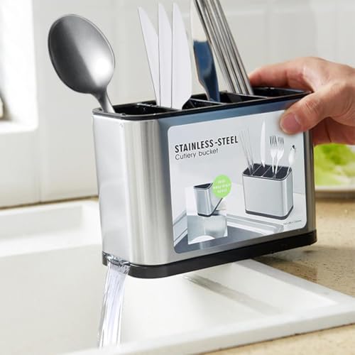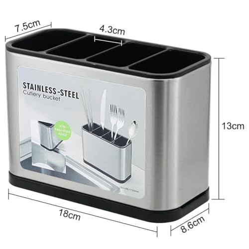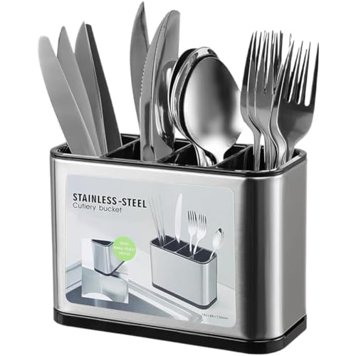 Danbghyuo - Cutlery Draining Rack Cutlery Holder Cutlery Holder Stainless Steel Cutlery Organizer with 4 Compartments and Drains for Storing Chopsticks, Knife, Forks, etc
