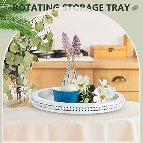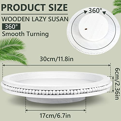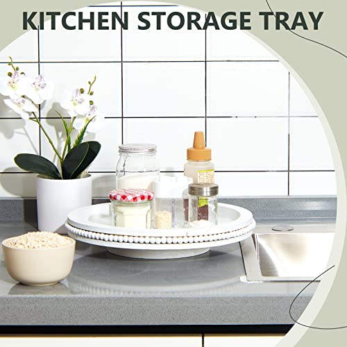 Dandat - Dandat 12 Inch Beaded Lazy Susan Wooden Lazy Susan Organizer Round Tray White Table Lazy Susan Centerpiece Lazy Susan Turntable for Cabinet 360 Degrees Rotating Wood Spice Rack Pallet for Kitchen