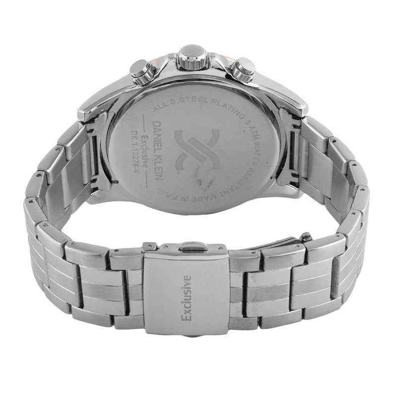 Daniel Klein - ساعة انالوج بعقارب ومينا اسود للرجال من دانيال كلاين، فضي وبينك وروز جولد، سوار DK.1.13274-4