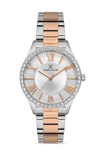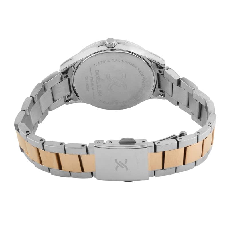 Daniel Klein - ساعة يد بحركة كوارتز وعرض انالوج للنساء من دانيال كلاين، سوار معدني فضي وذهبي وردي - DK.1.13228-3