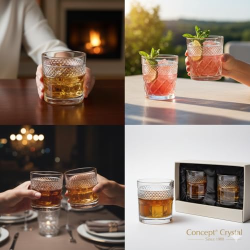 - Superior High-Clarity Glass: Crafted from premium, lead-free glass with exceptional clarity to showcase the rich colors of your favorite spirits, from whiskey to cocktails.