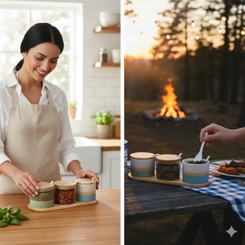 • أغطية محكمة الغلق تحافظ على التوابل طازجة ولذيذة.