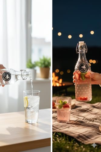 - Airtight Swing-Top Seal: Equipped with a classic metal lever-arm mechanism and a food-grade stopper to ensure a 100% airtight seal, keeping your drinks fresh and preventing leaks.
