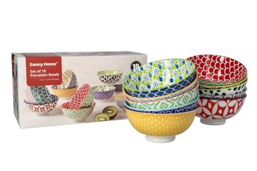 Danny Home - طقم بولات عشاء سيراميك من داني هوم، مقاس 12 سم، متعددة الألوان، طقم من 10 قطع، SE-005