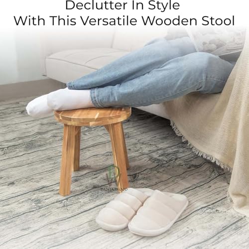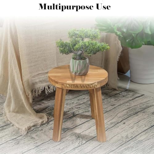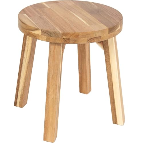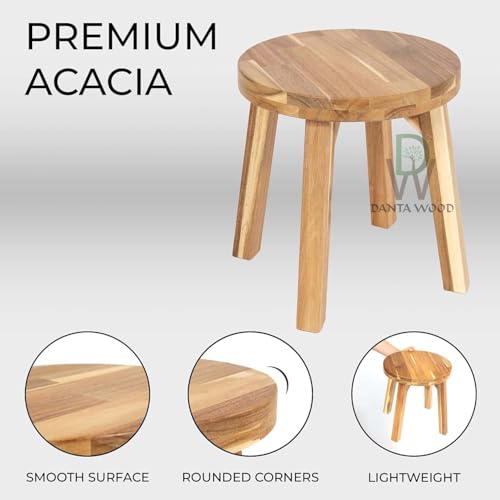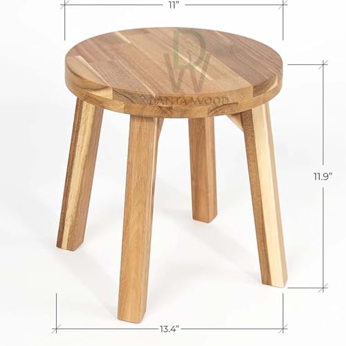 Dantawood - دانتاوود مقعد دائري من خشب الاكاسيا مضاد للانزلاق، بدون ظهر، لمسة نهائية من الشمع الطبيعي، مقعد خشبي للنباتات وغرفة الطعام وطاولة المطبخ والمكياج (12 انش)