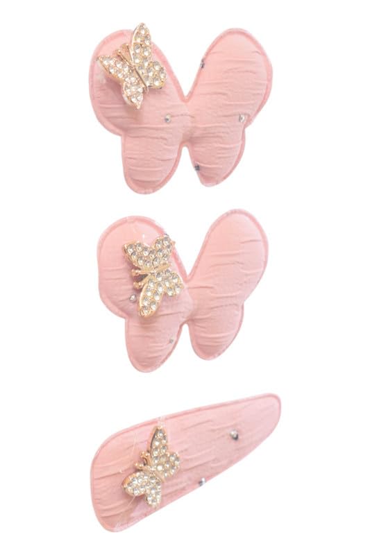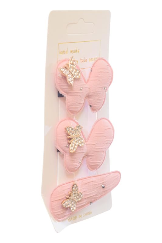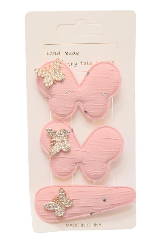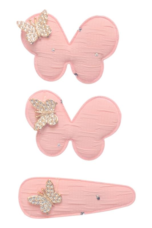 Daphane - Clips With Butterfly Design For Girls Set, 3 Pieces - Pink