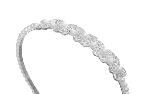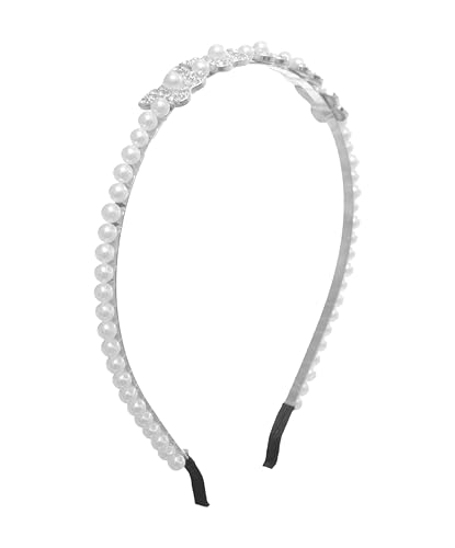 Daphane - طوق شعر أنيق مرصع بلؤلؤ وفراشة من دافان، أبيض وفضي
