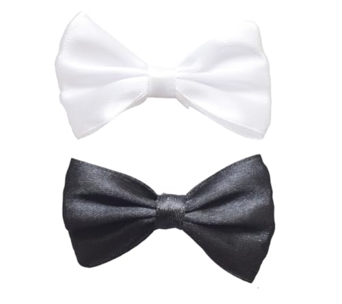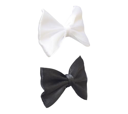 Daphane - Daphne Hijab Brooch Pin Set With Bow Design For Girls, 2 Pieces - White Black