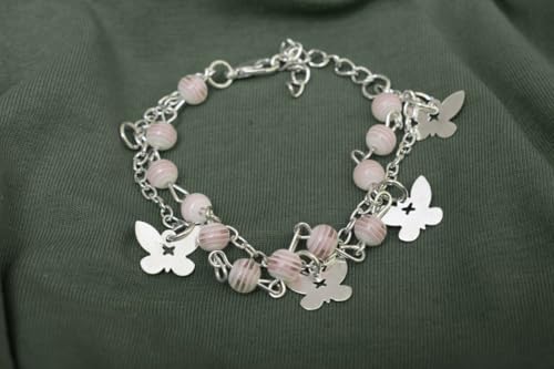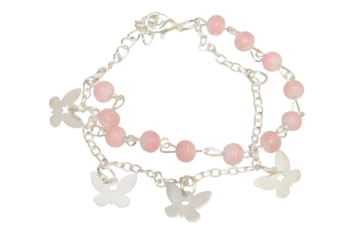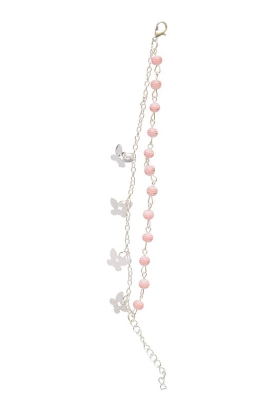DAPHNE - Daphne Stainless Steel Double Bracelet With Butterfly Style For Girls - Silver Pink