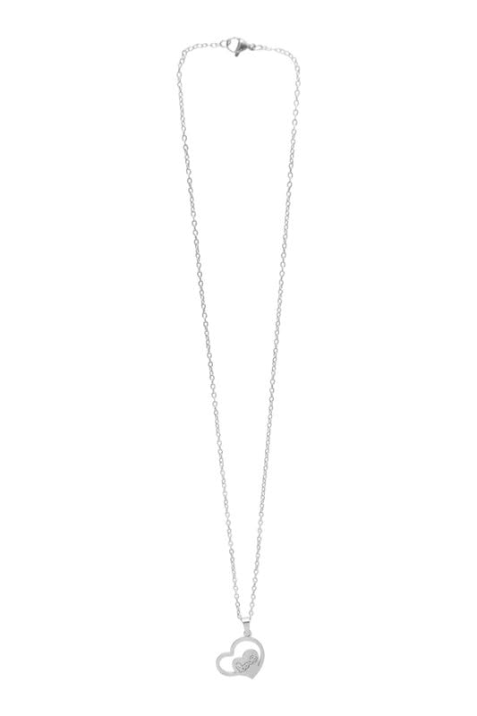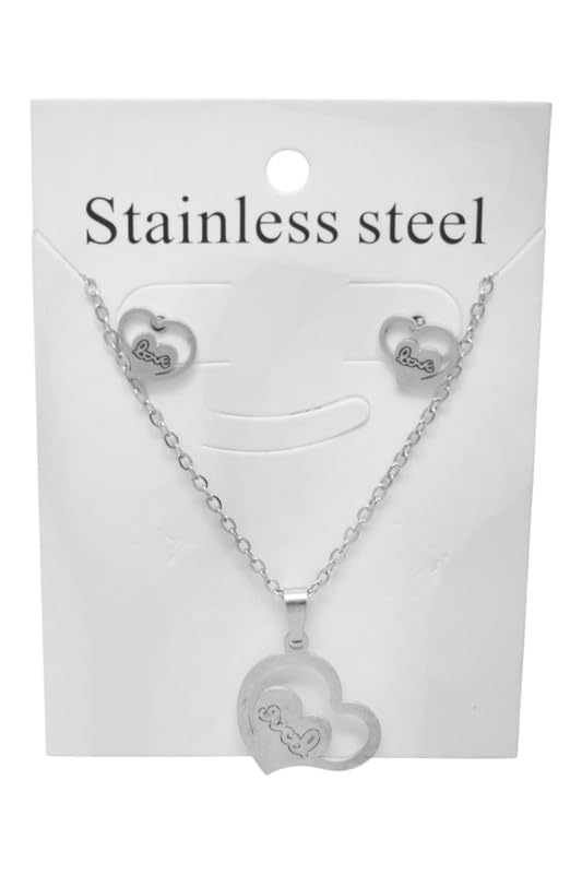 DAPHNE - Daphne Stainless Steel Jewelry Set Necklace & Earring With Heart Style For Girls - Silver