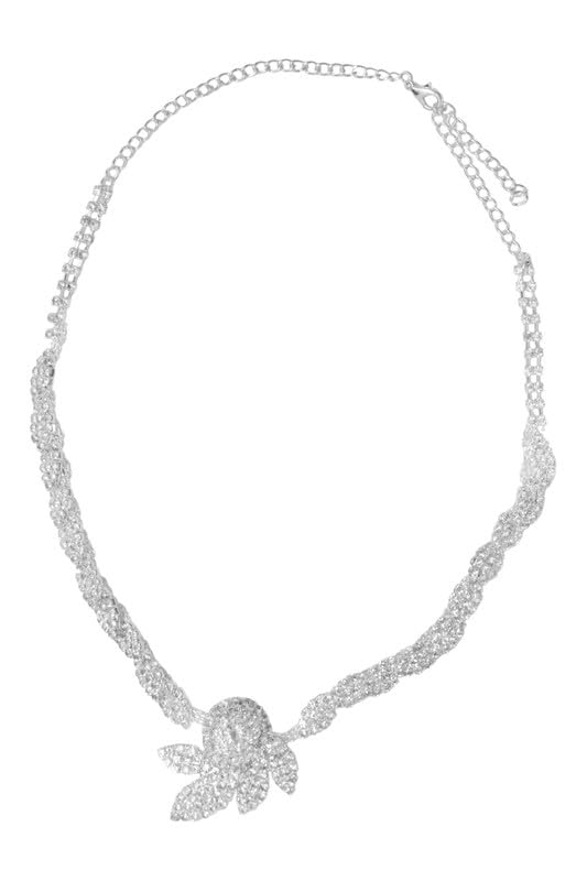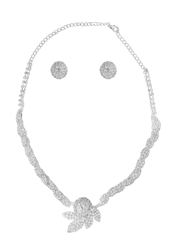 DAPHNE - Daphne Stainless Steel Jewelry Set Necklace & Earring With Leaf Drop Design For Girls - Silver