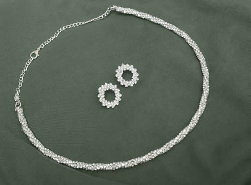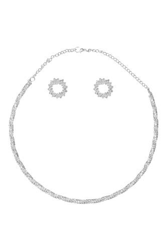 DAPHNE - دافني طقم مجوهرات زفاف من الستانلس ستيل مكون من عقد واقراط للبنات - فضي