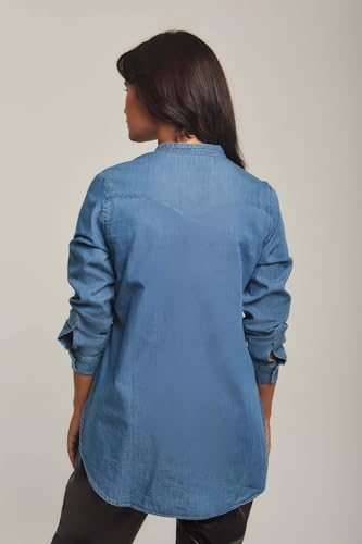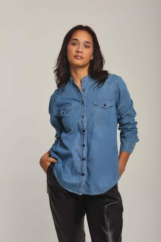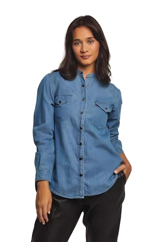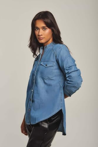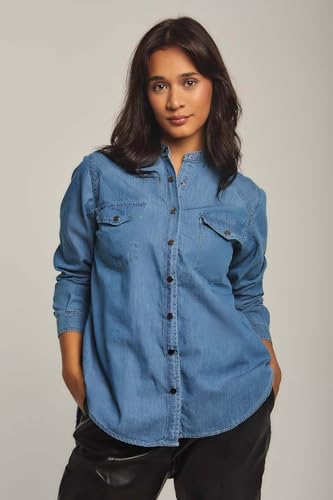 DARE - Dare Basic Long Sleeve Denim Shirt Blouse for Women, Light Wash, XS