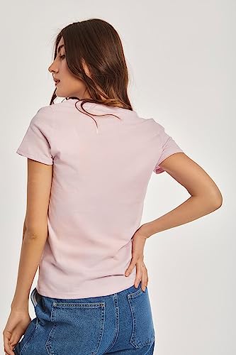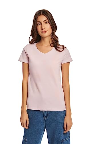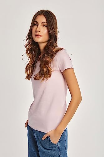 DARE - Dare Fancy V Neck Short Sleeve Solid T-Shirt for Women, Multicolor, XS